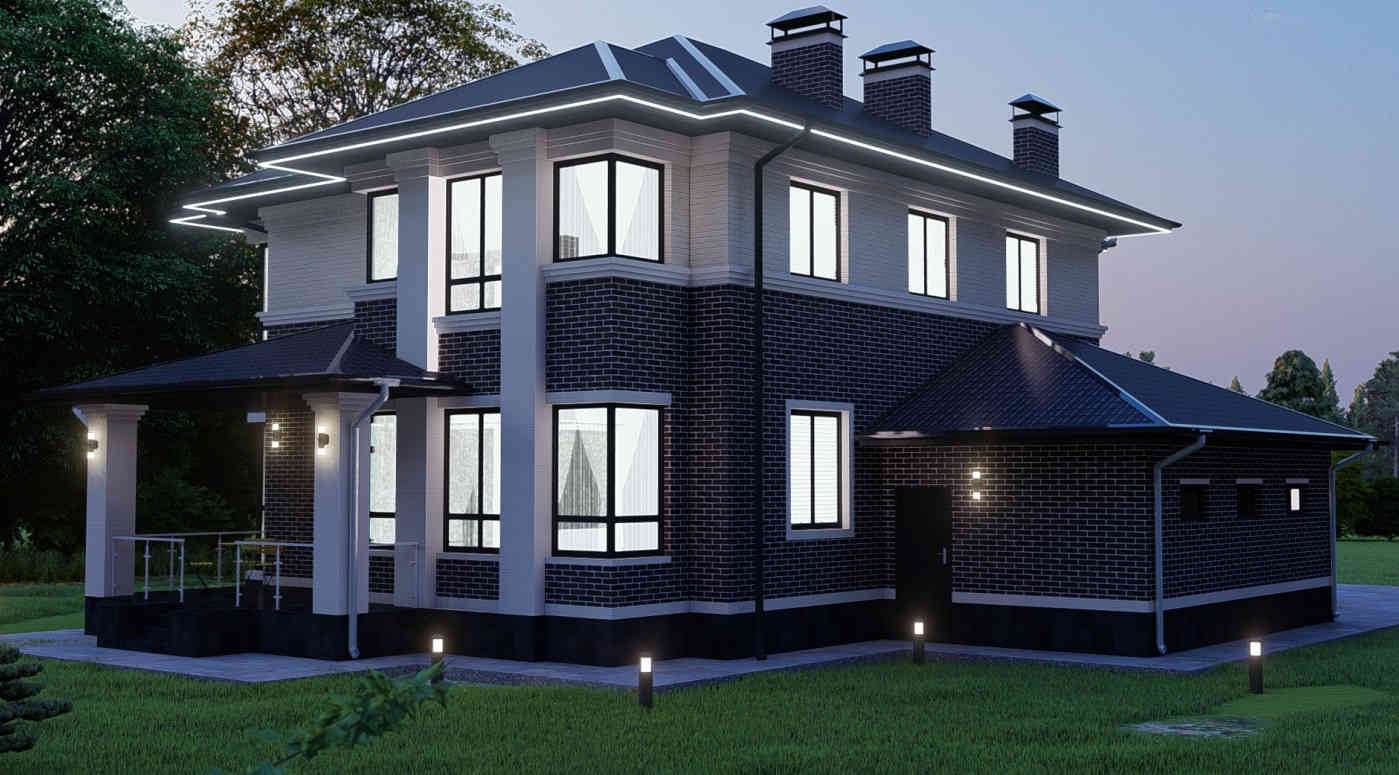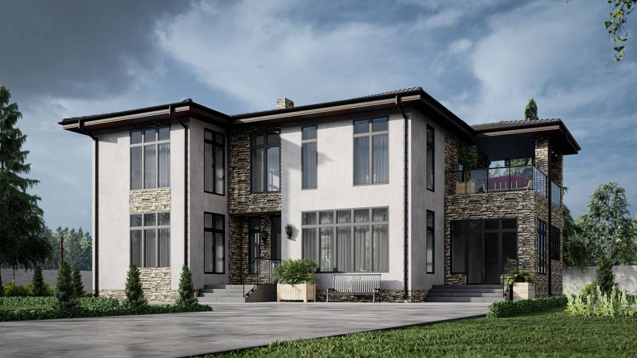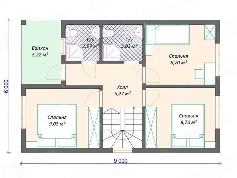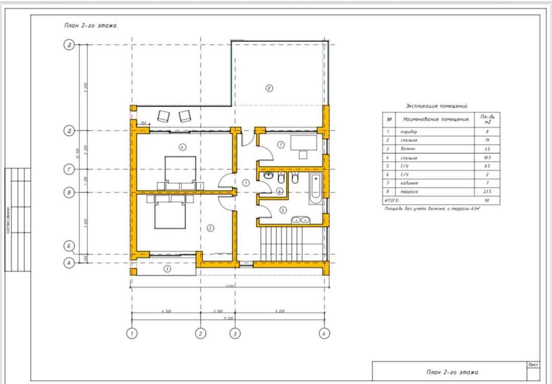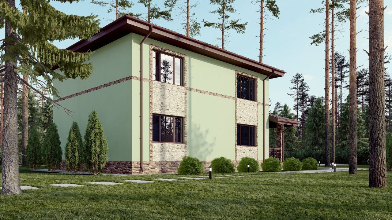 - Кухня 11,38 м², гостиная 27,55 м², крыльцо 10 м²