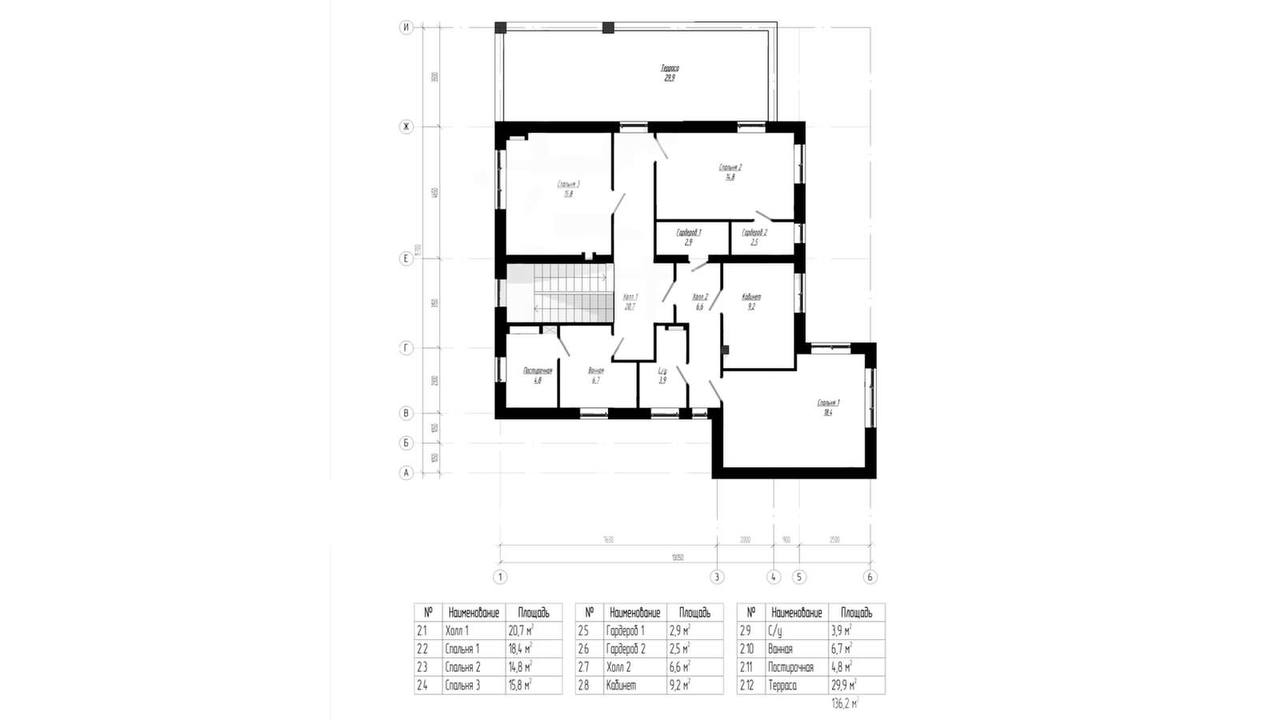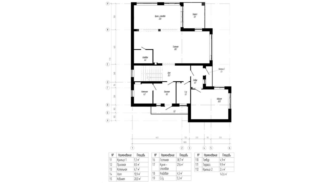 - Кухня 21,60 м², гостиная 38,70 м², терраса 29,90 м²